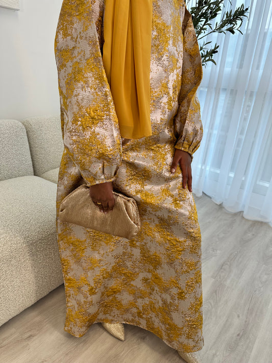 Mustard Gold and Champagne Beige Jacquard Dress Set