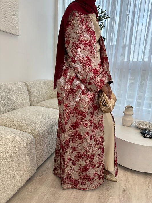 Burgundy and Champagne Premium Jacquard Abaya Set