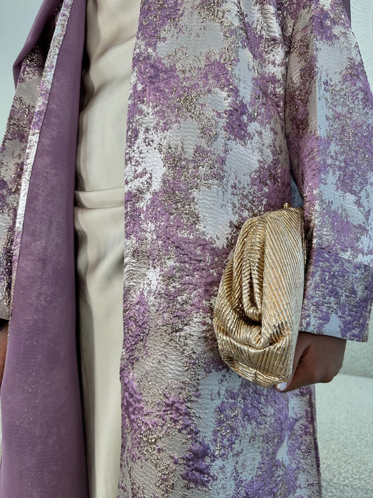 Soft Lilac and Champagne Beige Premium Jacquard Abaya Set