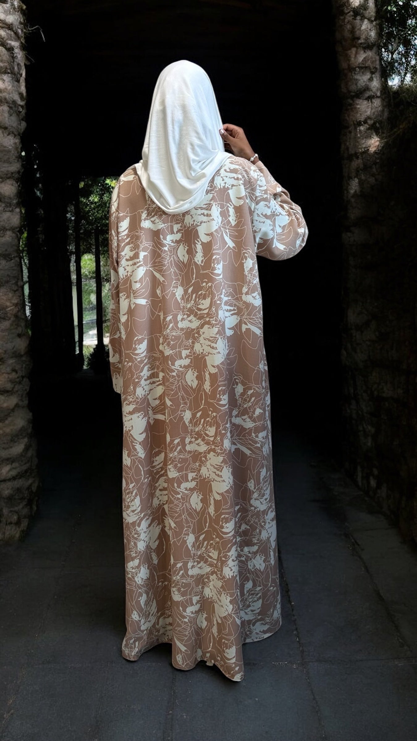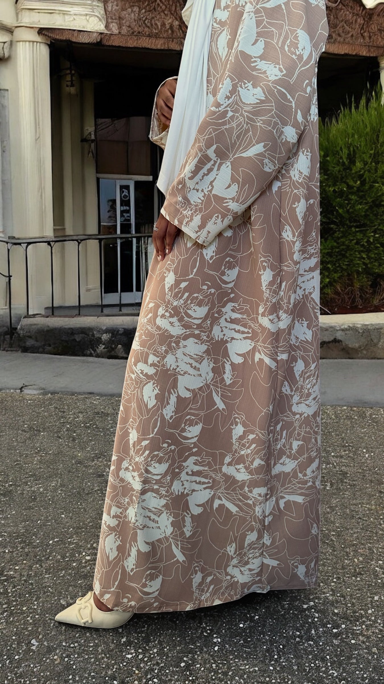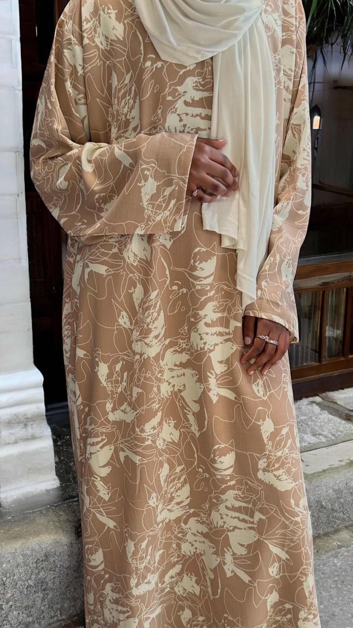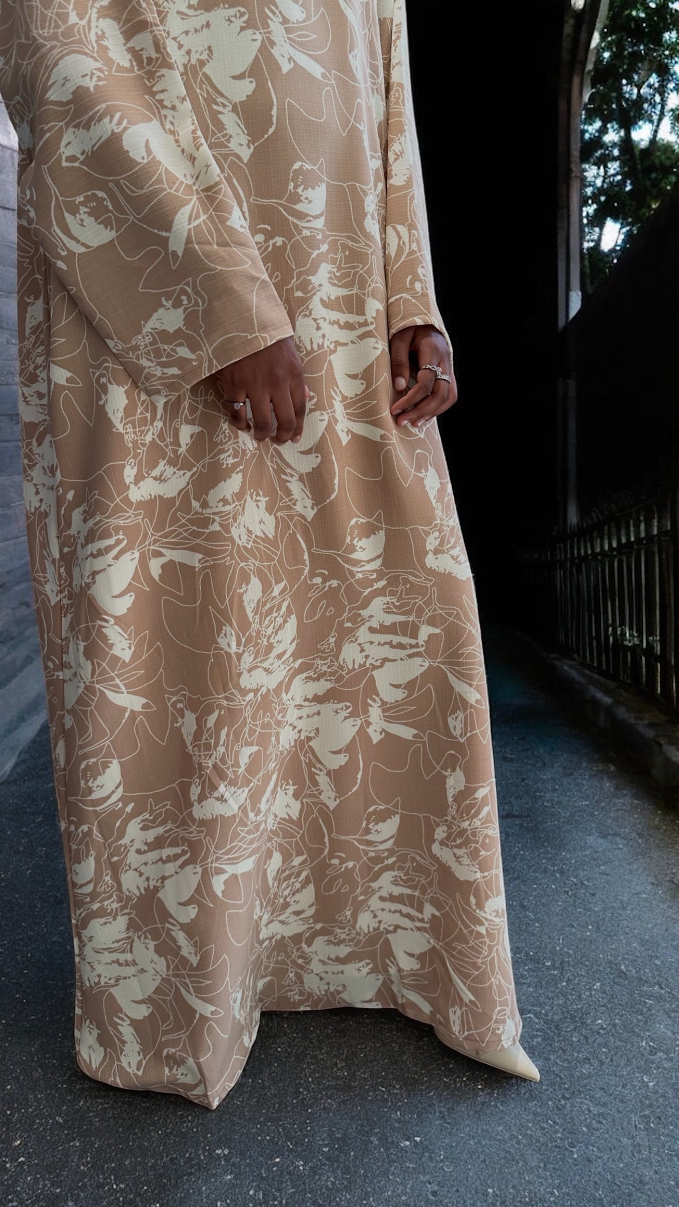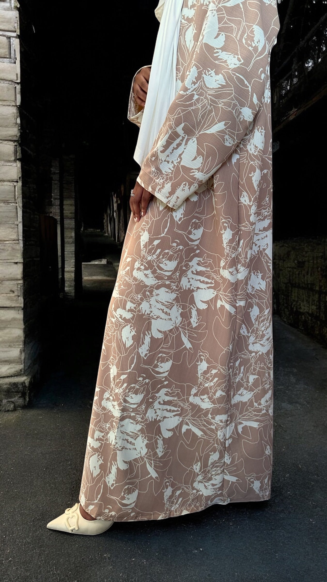Blush Beige Floral Abaya Dress