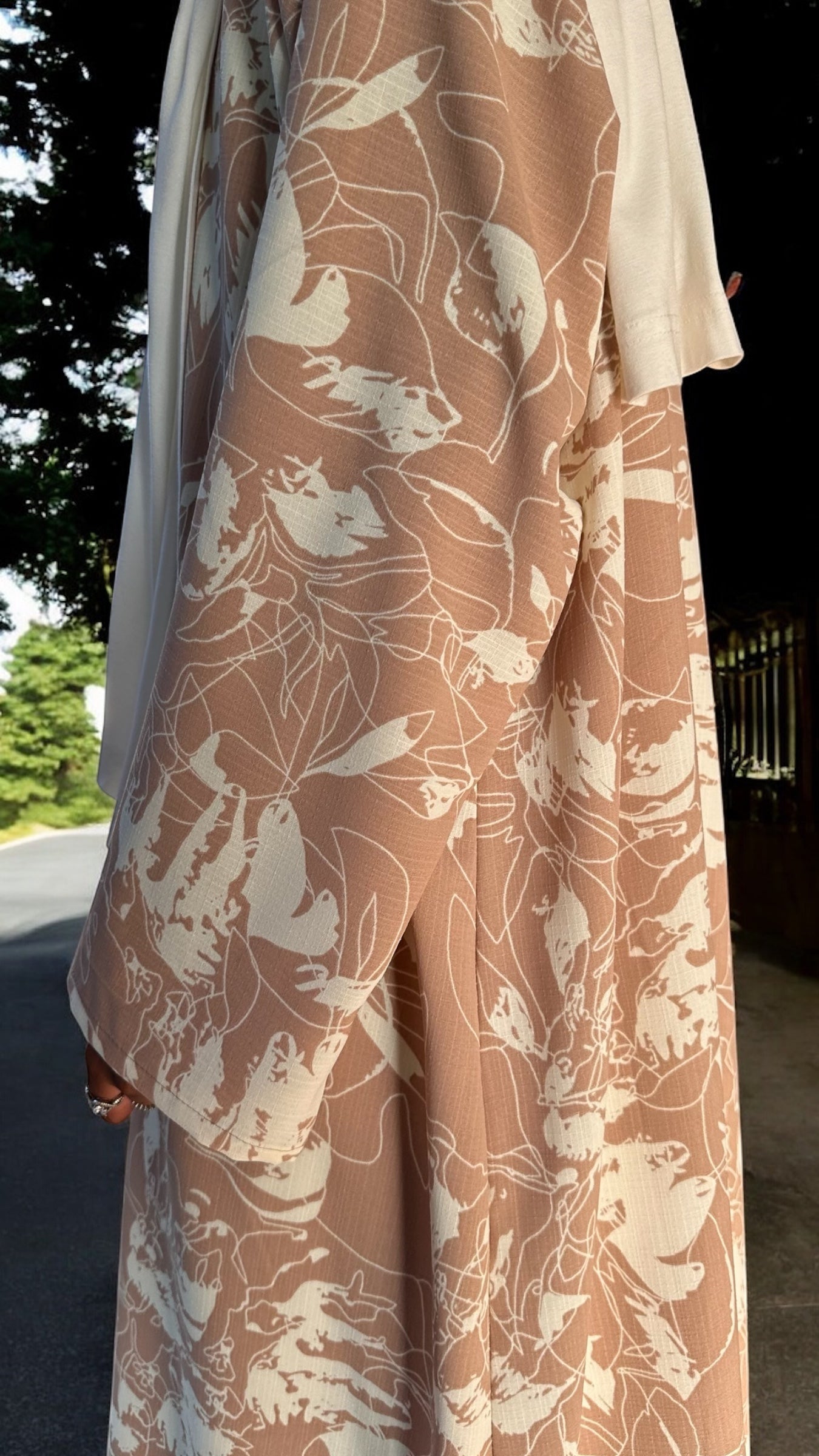 Step into effortless elegance with this timeless summer staple that blends warmth and grace. Crafted from lightweight, breathable fabric, it features a soft nude-beige base adorned with delicate ivory abstract floral prints that evoke a sense of quiet sophistication. Perfect for sunlit strolls, afternoon gatherings, or serene evenings, this piece radiates femininity with every step.