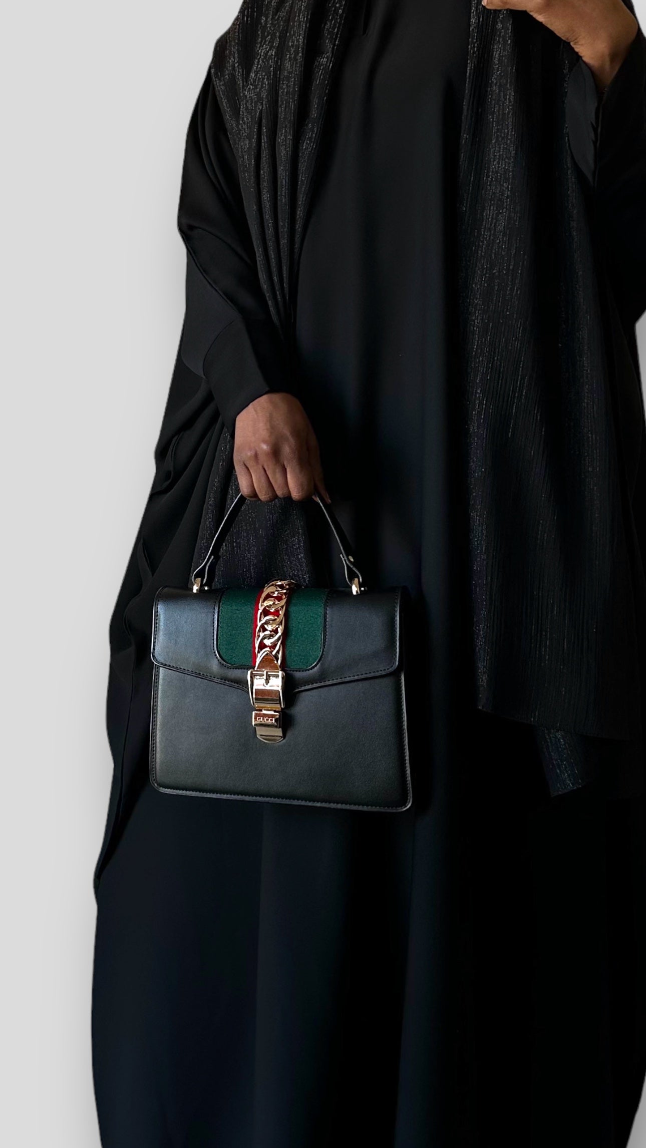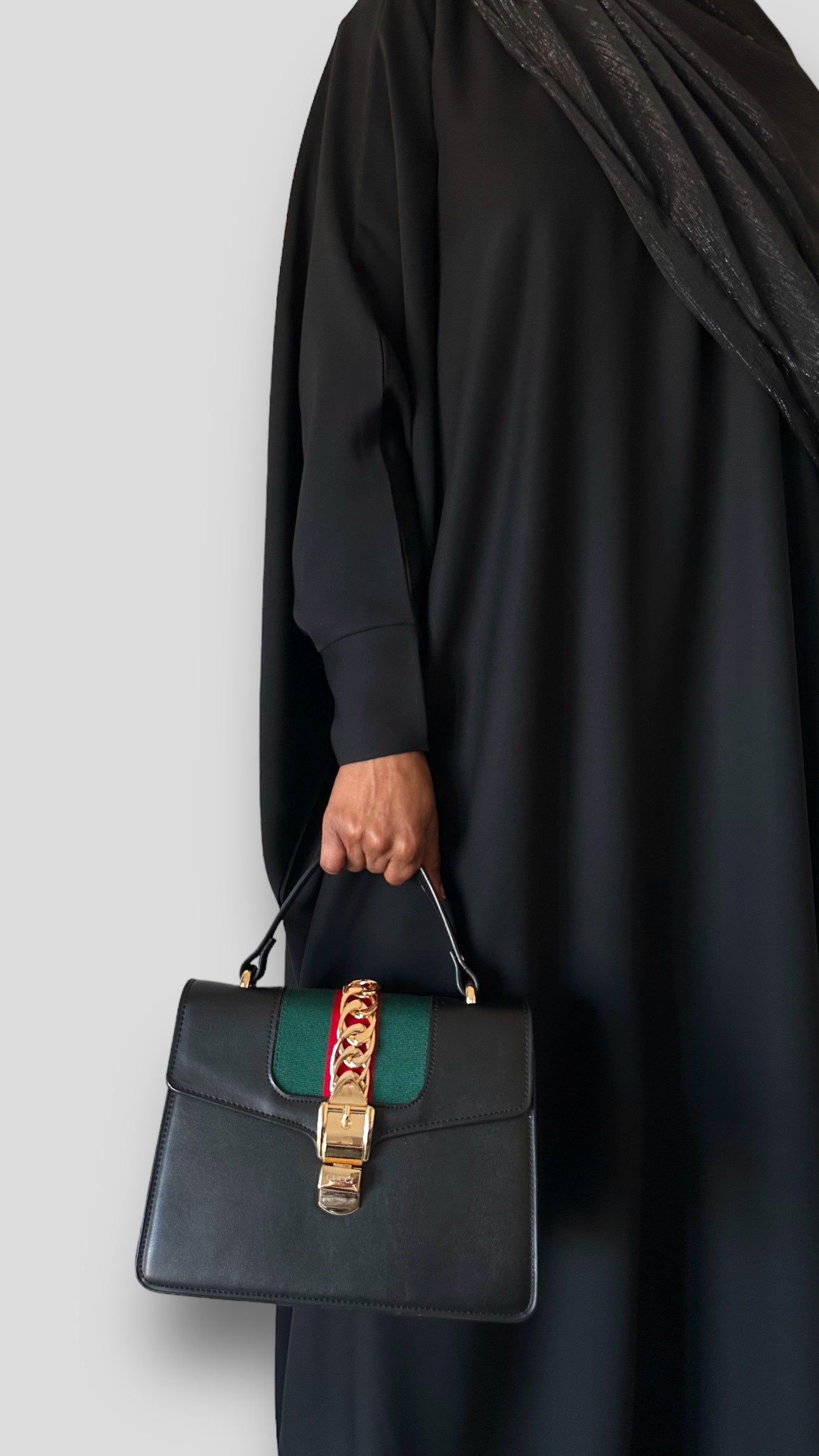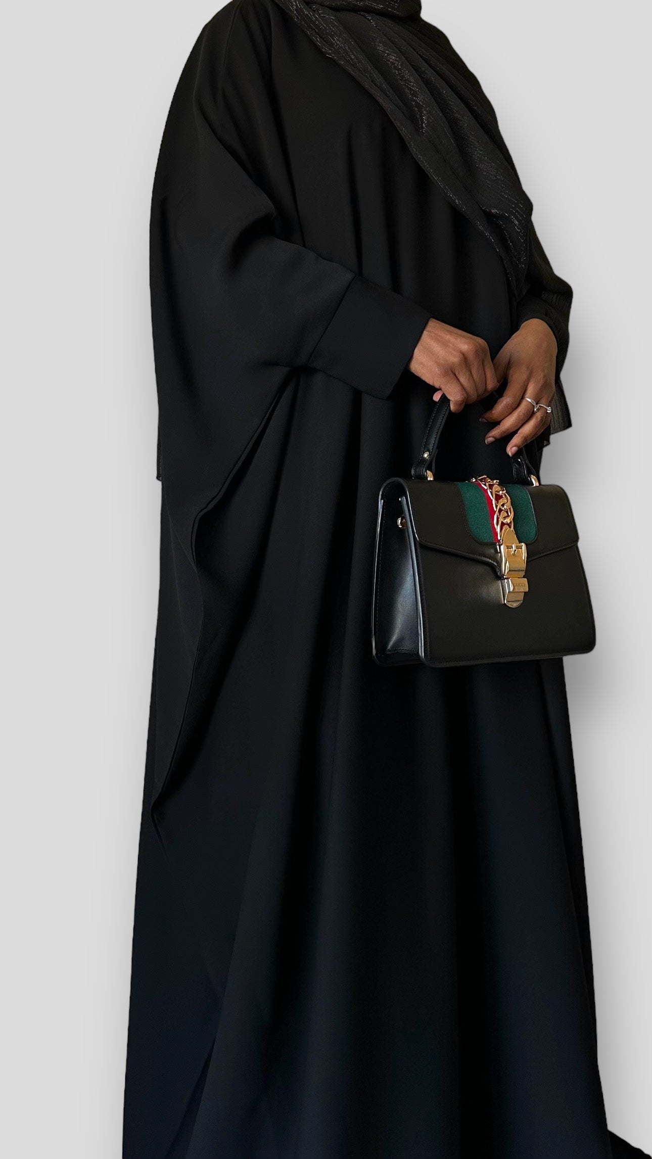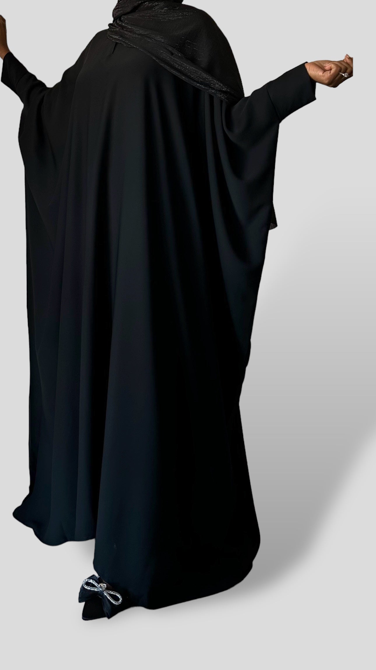 Introducing the CoCo Black abaya, a timeless and sophisticated oversized garment exuding elegance. Elevate your style with the accompanying shimmery large scarf for a polished look, or opt for a more relaxed vibe on casual days. Featuring classic cuffs and crafted from a luxurious, soft-textured fabric, this abaya offers both comfort and graceful movement, effortlessly embodying understated glamour.