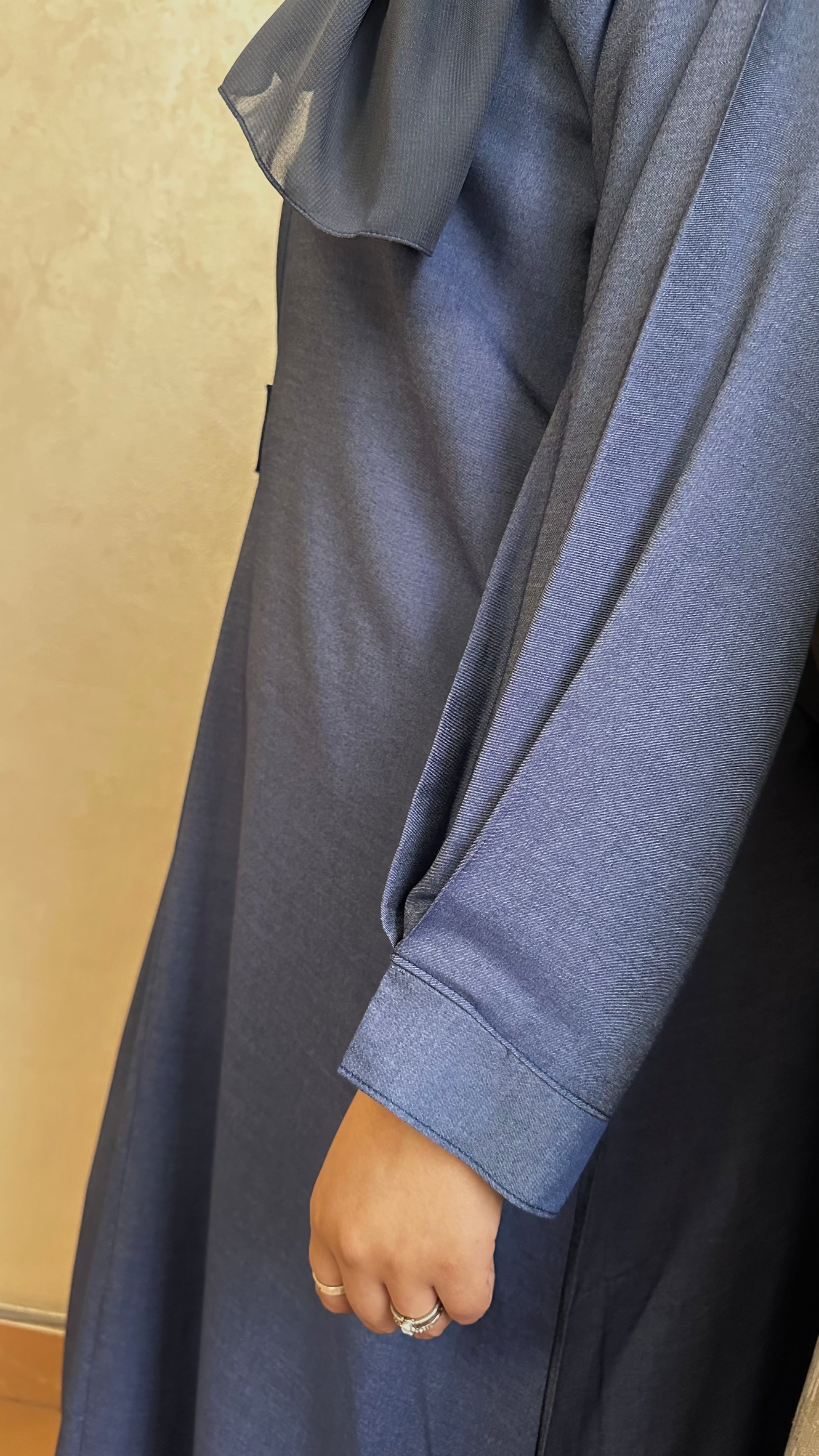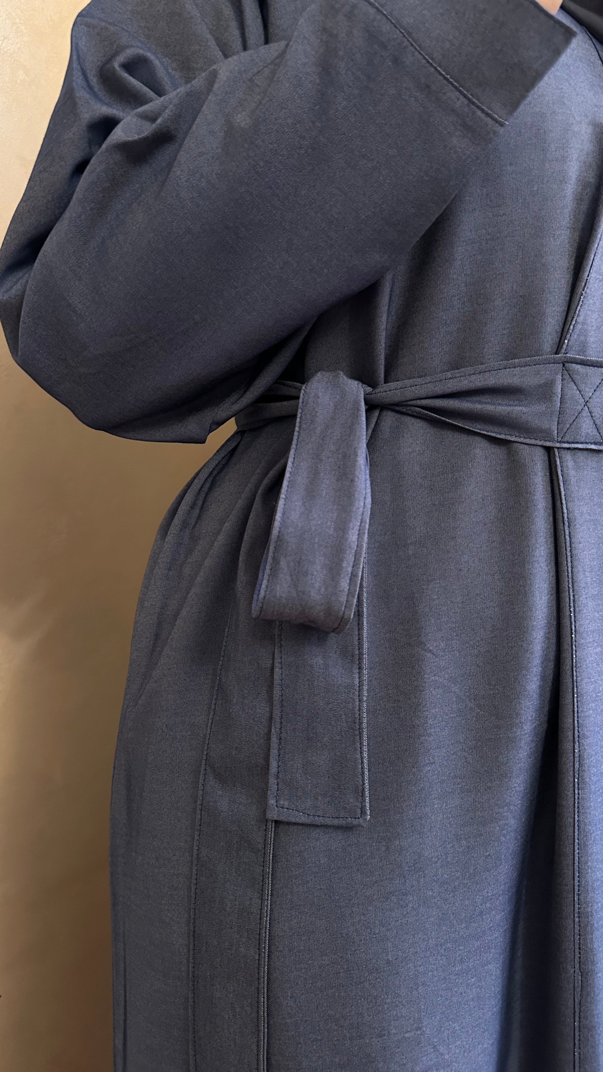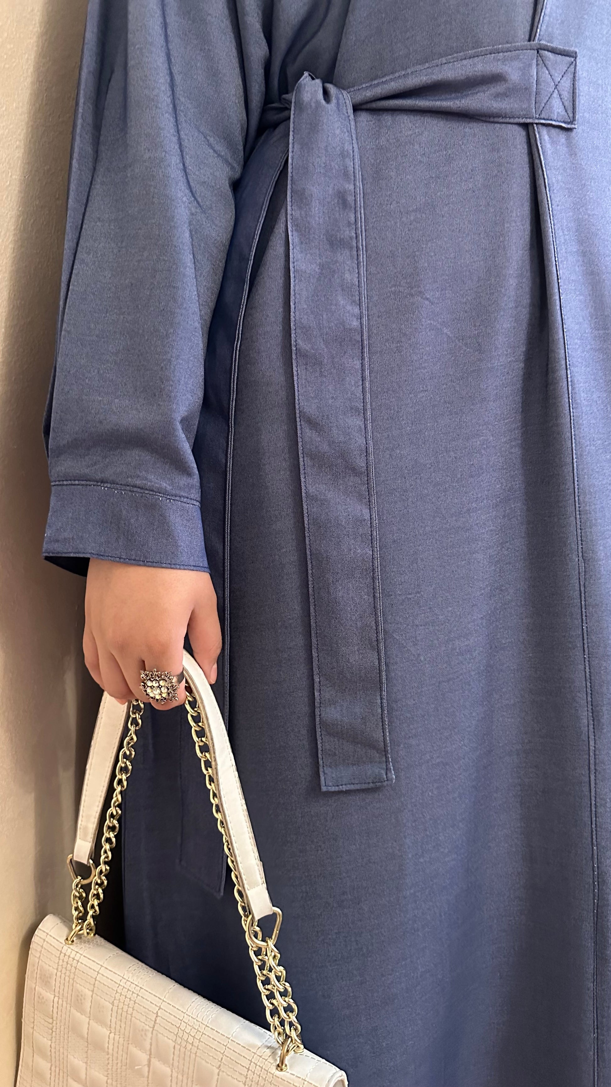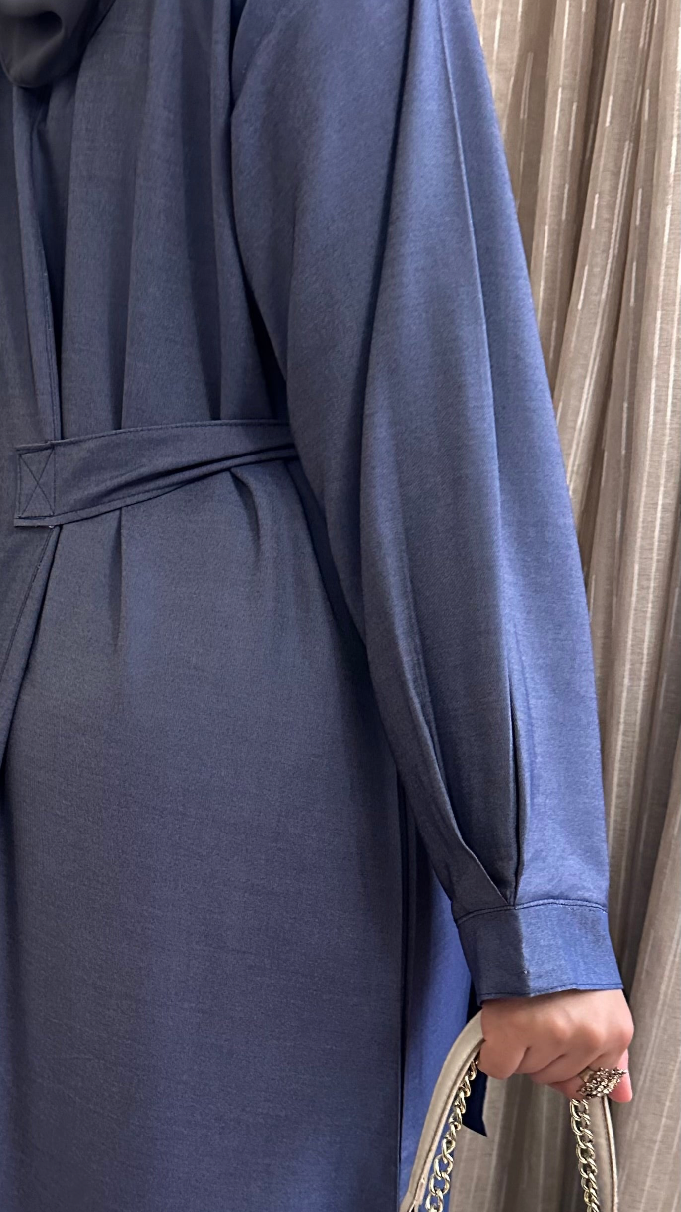 Experience the perfect blend of elegance and comfort with this stunning denim maxi wrap dress, designed for warmer climates. Crafted from lightweight and soft denim, it features a breathable, loose, and airy design that ensures optimal airflow. The dress is adorned with intricate detailing along the long sleeves, a beautifully crafted neckline, and both the front and back panels, making it a true standout. The Denim Breeze combines the timeless charm of denim with a graceful drape, offering effortless style and cool comfort. It also comes with a soft maxi scarf to complete the look.
