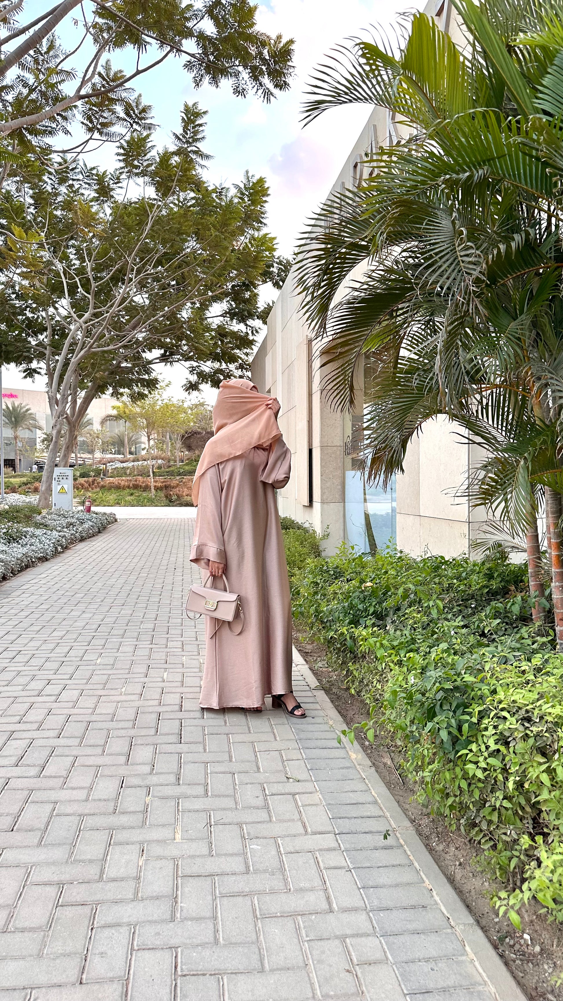 Golden is a stunning and elegant closed abaya, crafted from a luxuriously soft, silky material with a radiant golden beige sheen. Effortless elegance defines this ensemble, complemented by a generously sized beige scarf. The abaya is adorned with a subtle yet stylish slit on the sleeves, enhancing its overall allure.