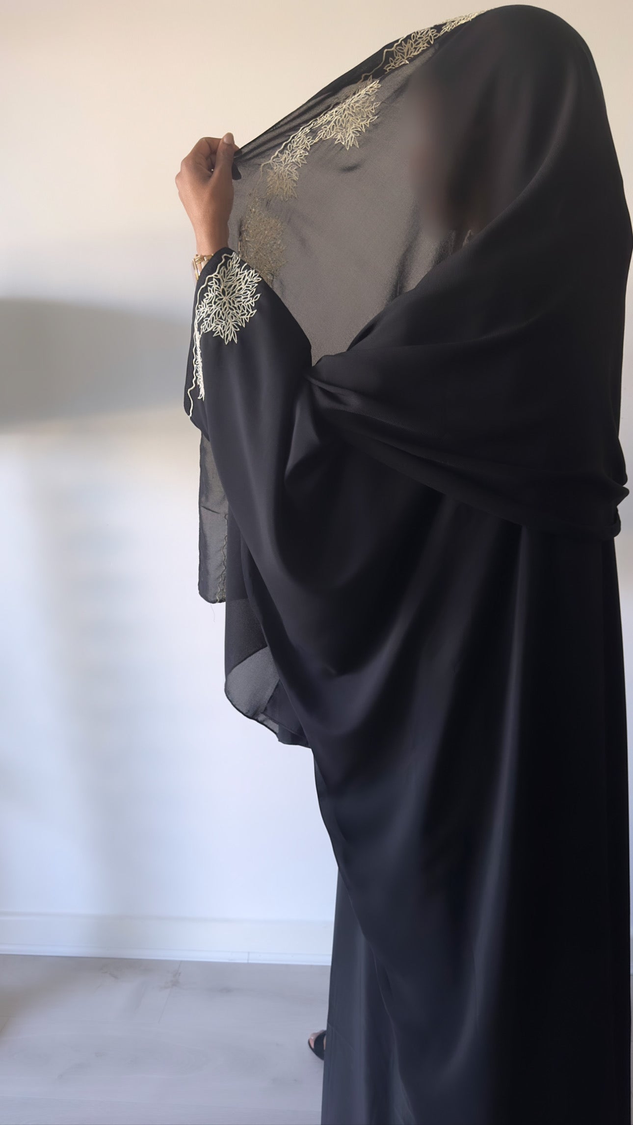 Style: Batwing loose fitting, open abaya with buttons