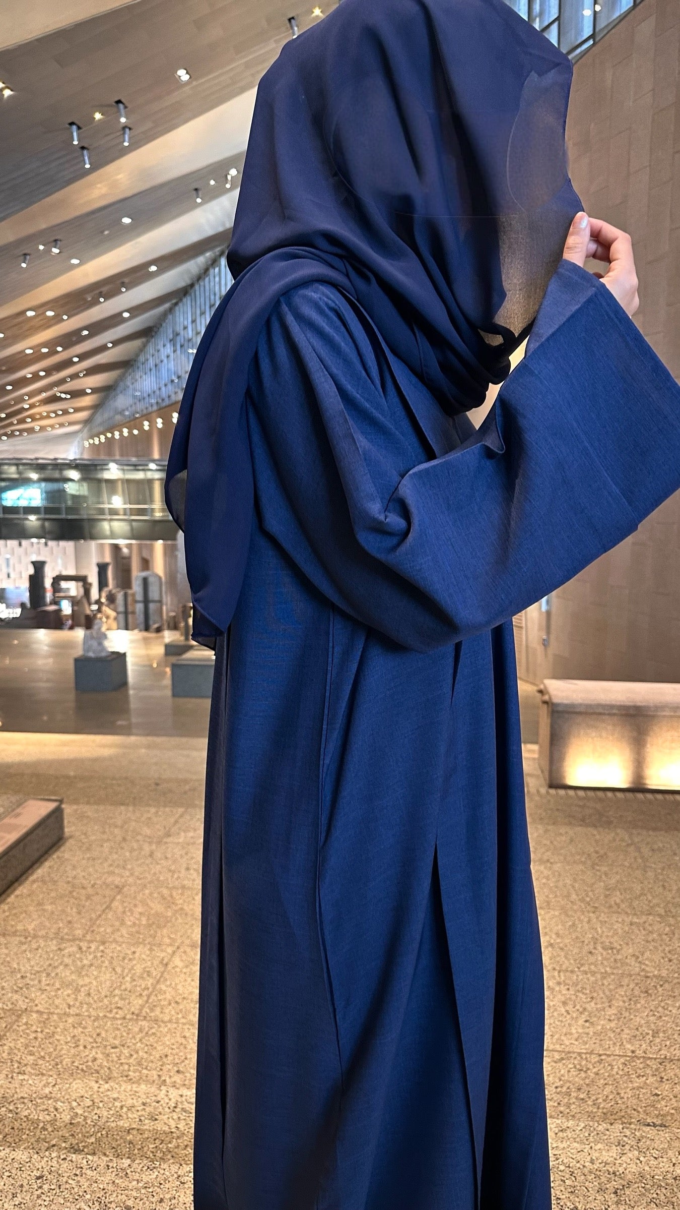 The Classic Navy abaya is a beautifully crafted linen abaya in a rich navy blue. With detailed accents on the front, back, and sleeves, it stands out for its unique yet elegant design. This closed abaya comes with a matching scarf, offering a simple and graceful look, perfect for all seasons.