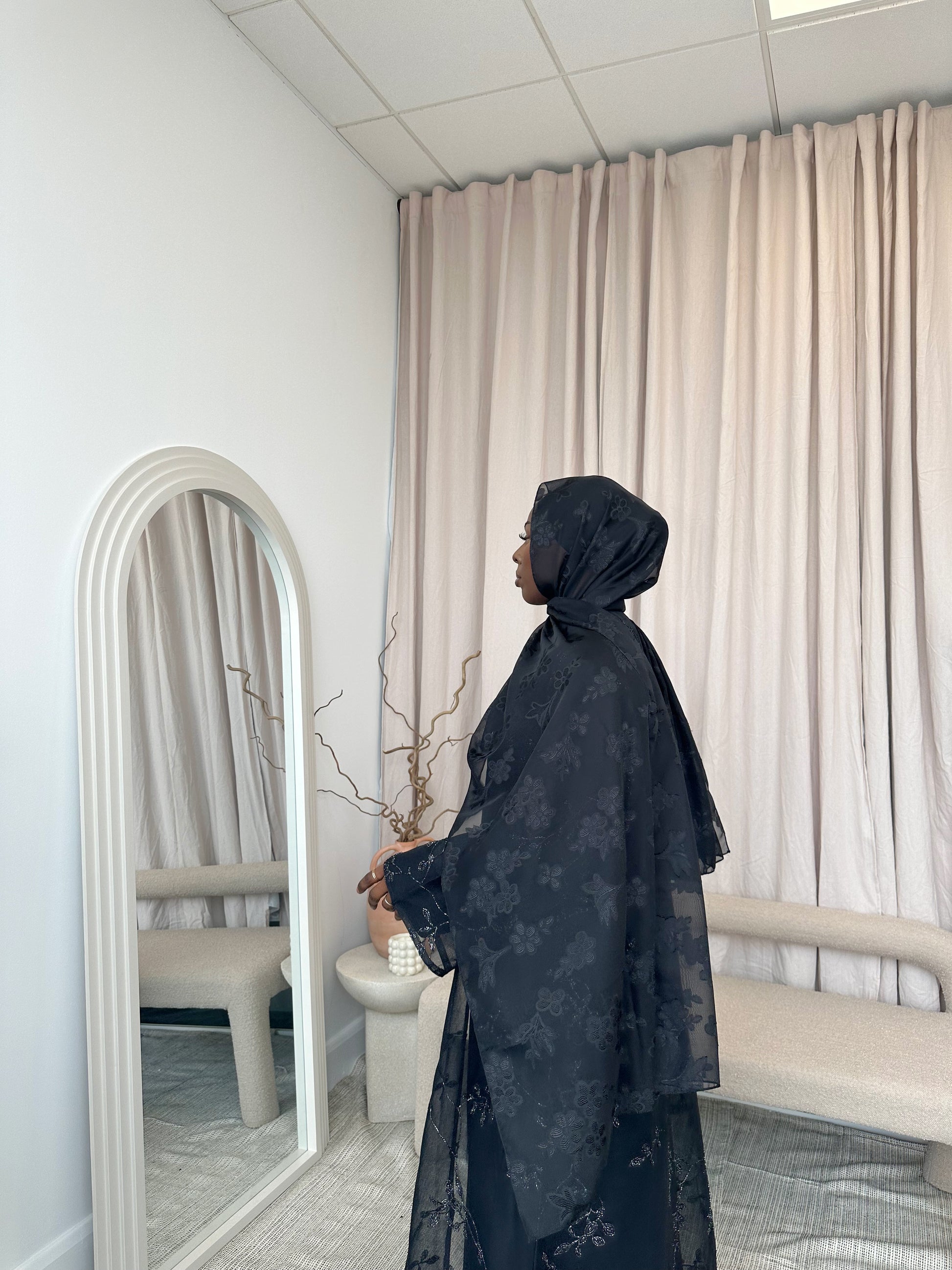 Introducing our Midnight Blossom Scarf, black classic floral maxi scarf, the epitome of elegance and versatility. Crafted to elevate any ensemble, this scarf effortlessly adds a touch of sophistication to your social evening look, ensuring you stand out on every occasion. With its soft and lightweight fabric, it offers both comfort and style, making it the perfect accessory for any season. Let this exquisite scarf bring out the best in your outfits, infusing them with a vibrant flair that captures attention and admiration wherever you go.