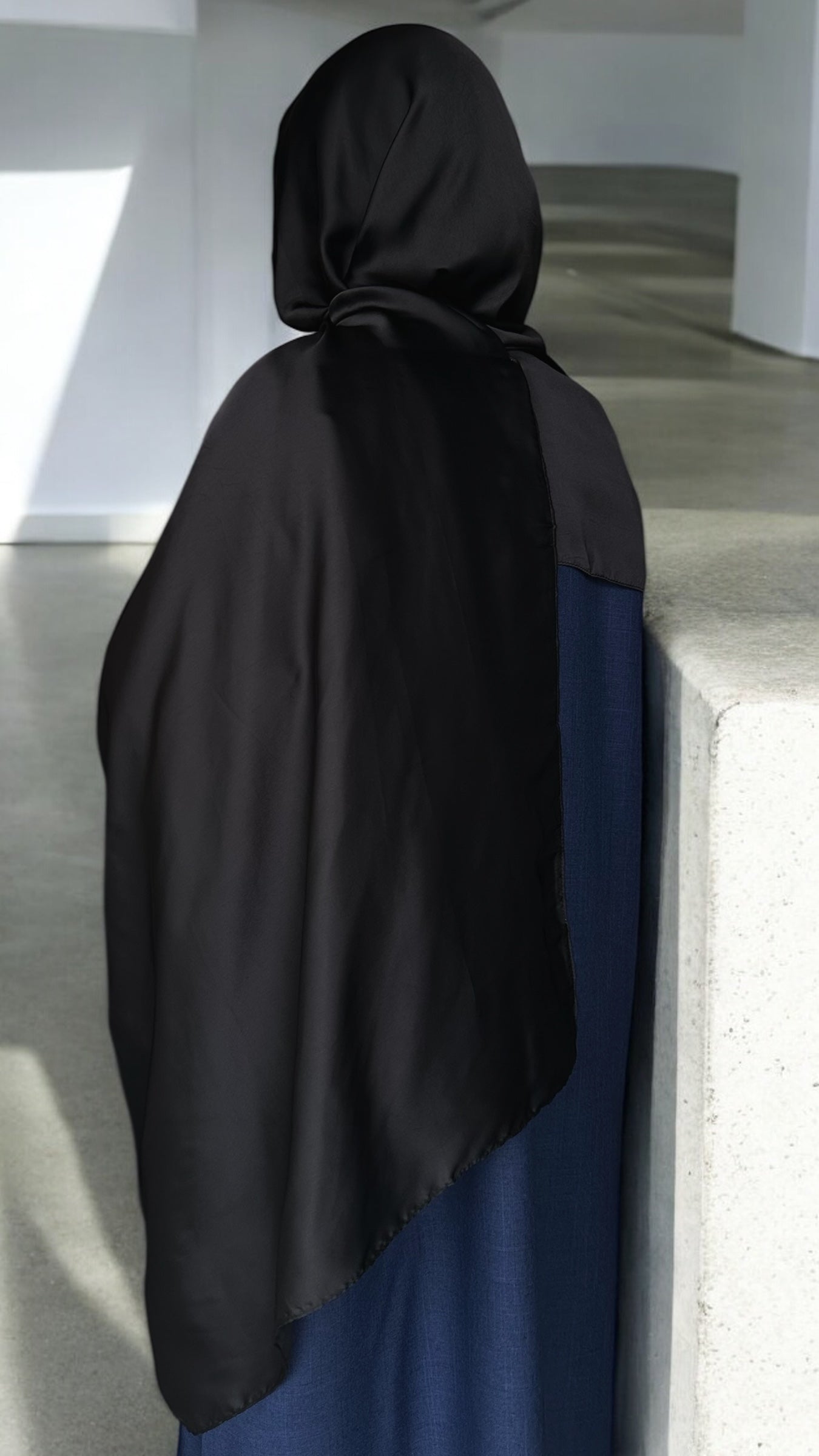 This beautiful silk satin maxi scarf comes in a classic black colour, making it a stylish and versatile accessory for any outfit.